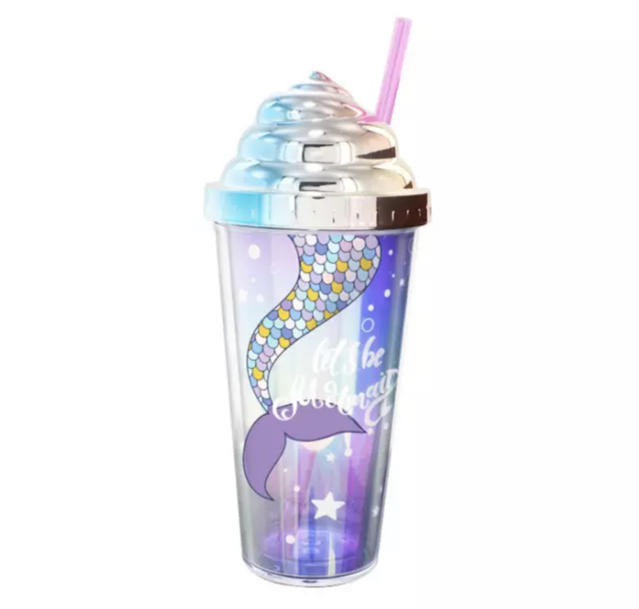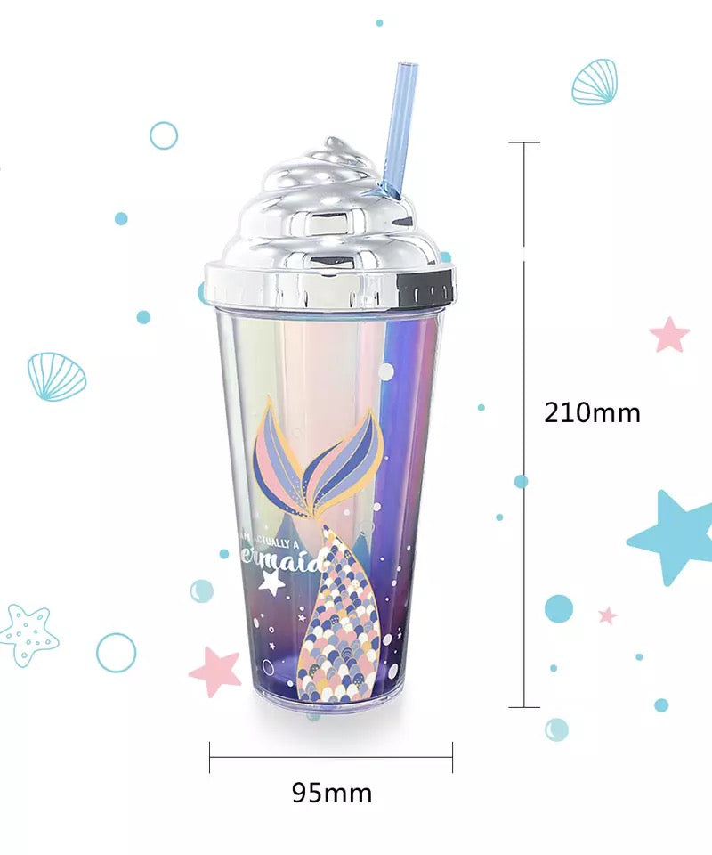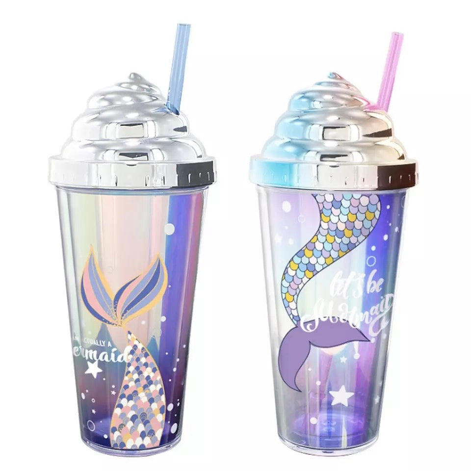 Electroplated Glitter Water Cup Creative Straw Mermaid Plastic Cup